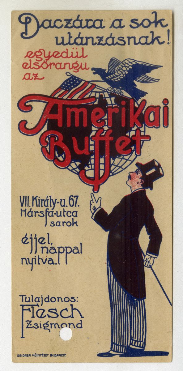 étterem, büfé, gyorsétterem, férfi, kalap, sétapálca, földgömb, amerikai sas, amerikai zászló, Amerikai Egyesült Államok, amerikaiak, reklámnyomtatvány, kisnyomtatvány, aprónyomtatvány, számolócédula