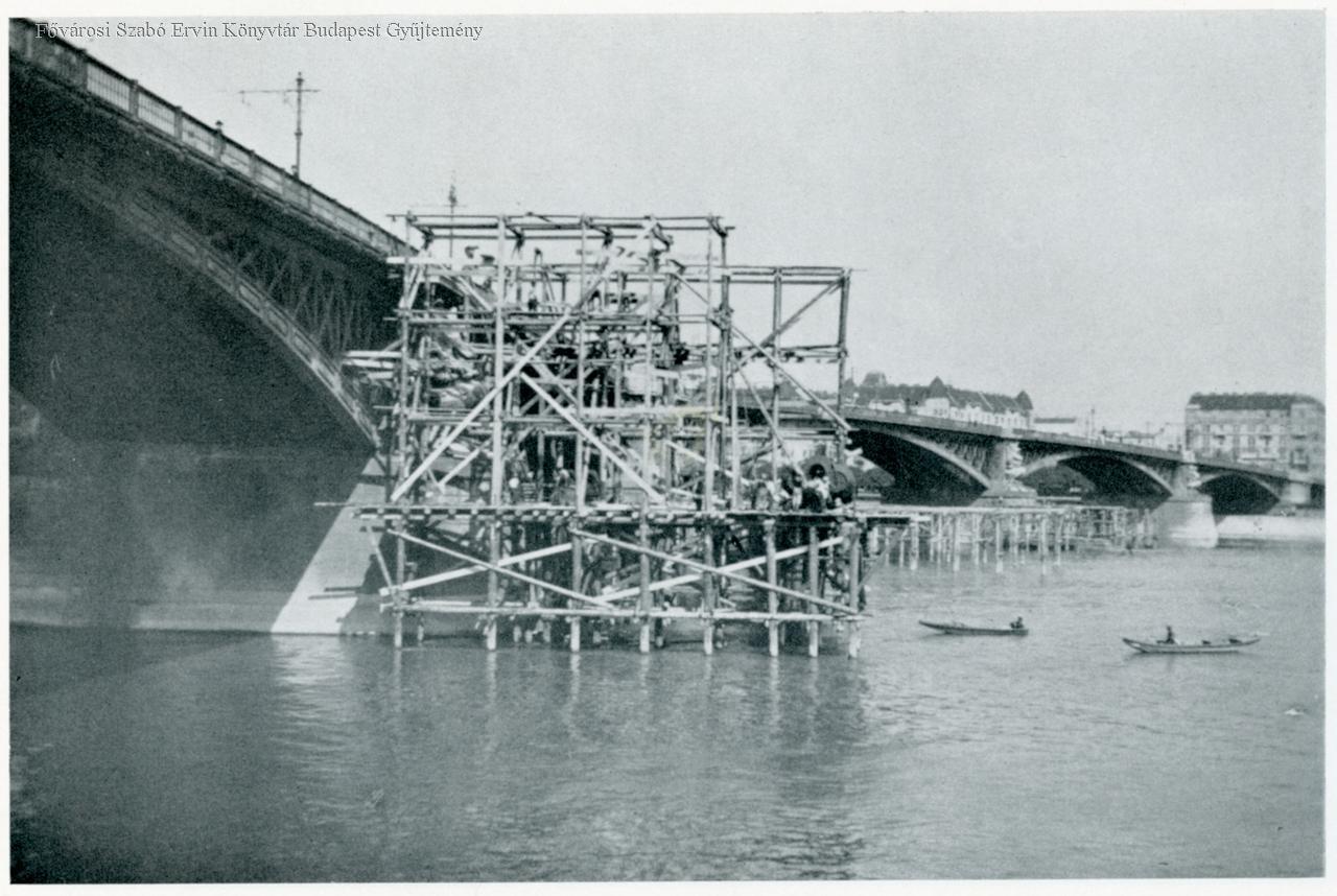 [A Margit híd átépítése, 1935-1937] A budai második pillér állványa : 1935. VIII. 3.