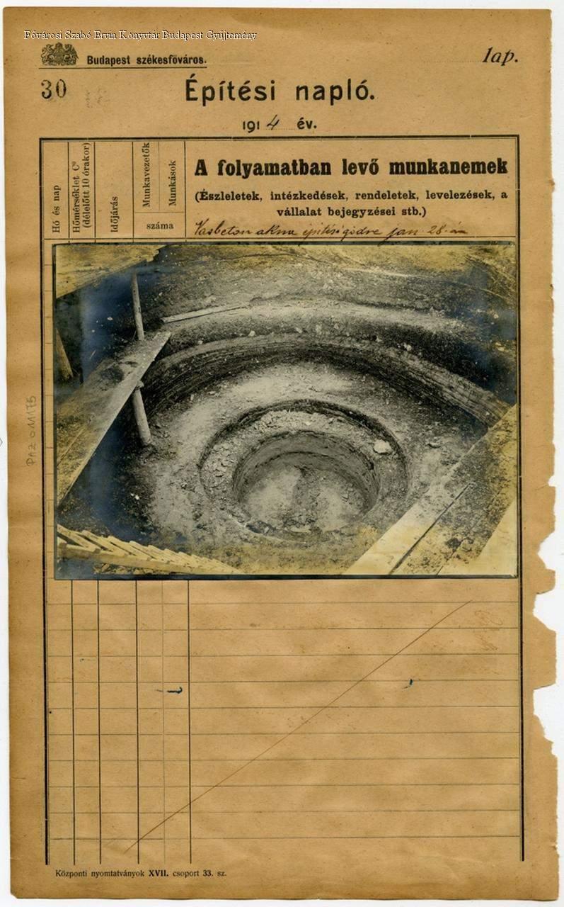 Vasbeton akna építési gödre 1914. jan. 28-án