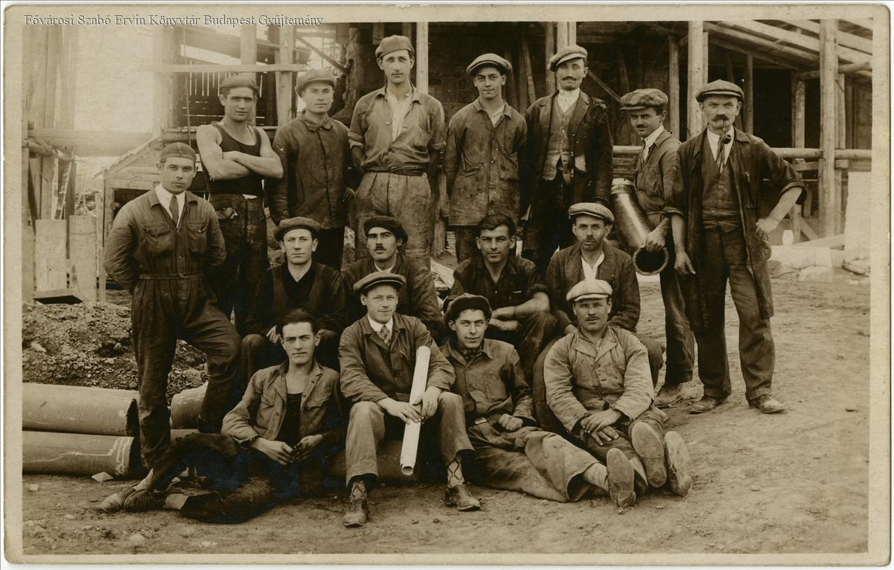 [Munkások csoportja a csepeli csőgyár udvarán]