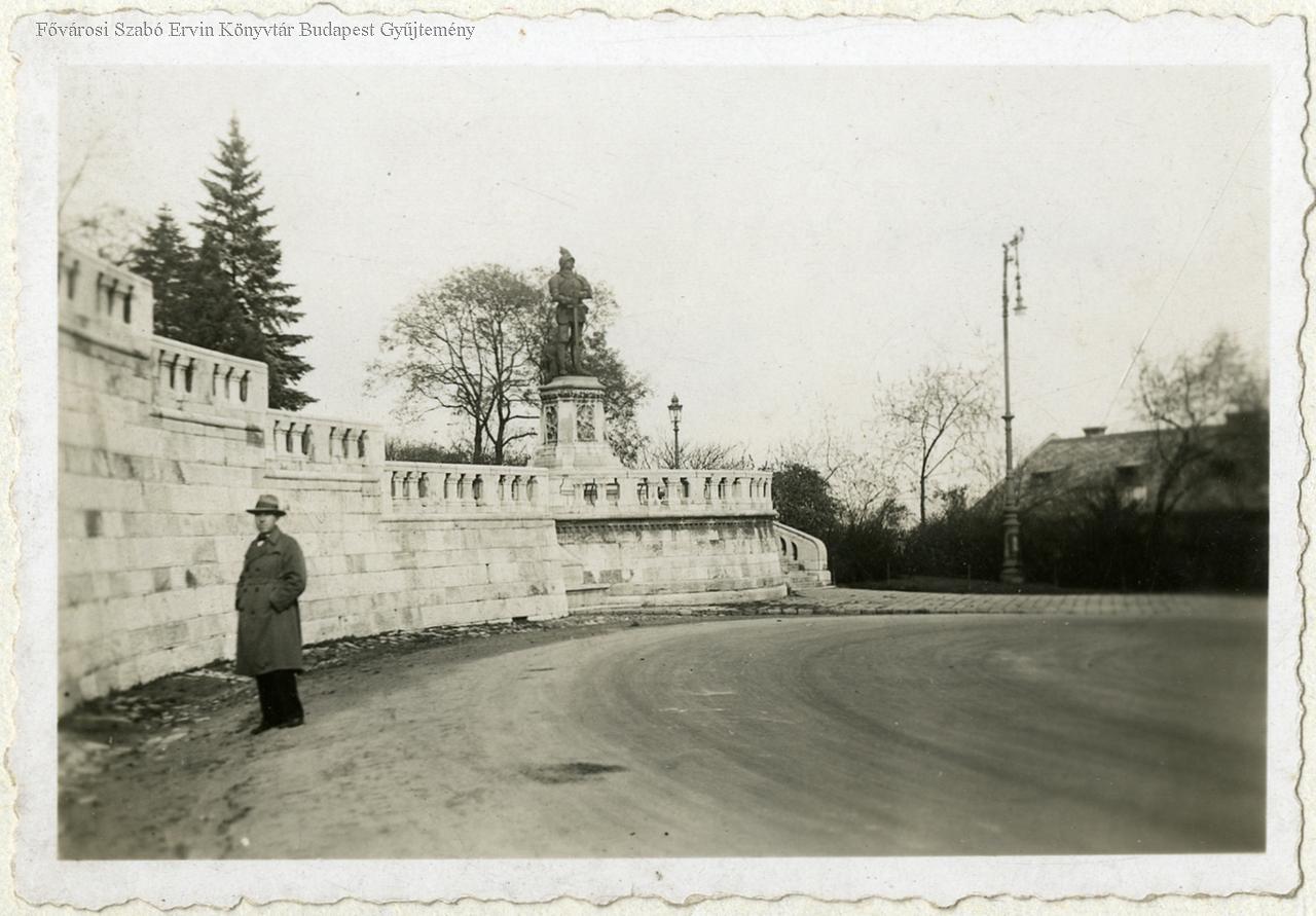 szobor, bástya, közút, férfi, neoromán, műemlék, amatőr fénykép, 1931