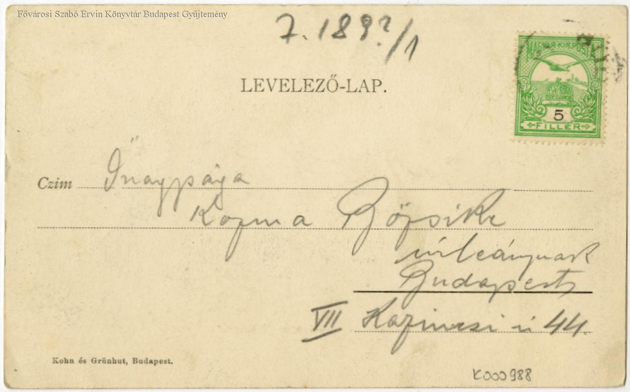 képes levelezőlap, utcakép, földút, üzlet, ember, vasúti sín, 1890-es évek
