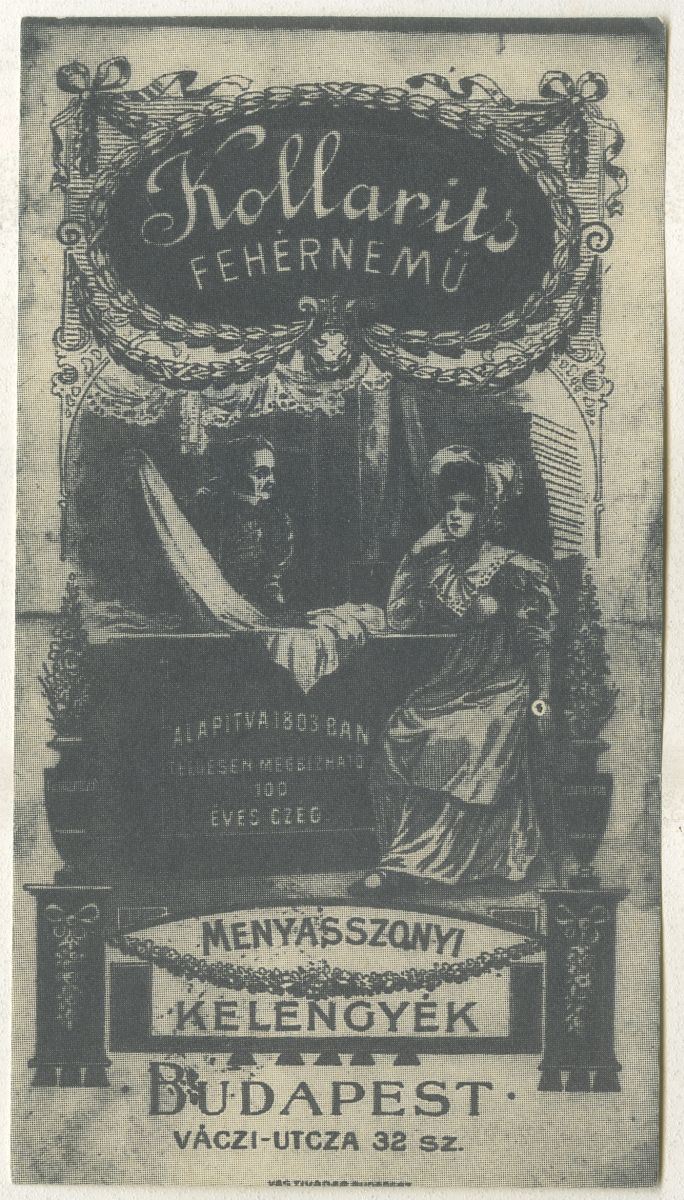 fehérnemű, üzlet, textiláru, eladó, vásárló, nő, gazdag, drága, divat, luxus, főkötő, reklámnyomtatvány, kisnyomtatvány, aprónyomtatvány, számolócédula