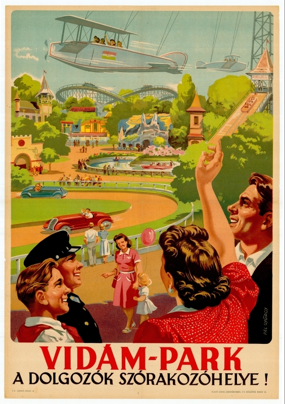 vidámpark, Budapesti Vidám Park, Budapest, Városliget, szabadidő, Rákosi-korszak, szocializmus, kommunizmus, grafikus plakát